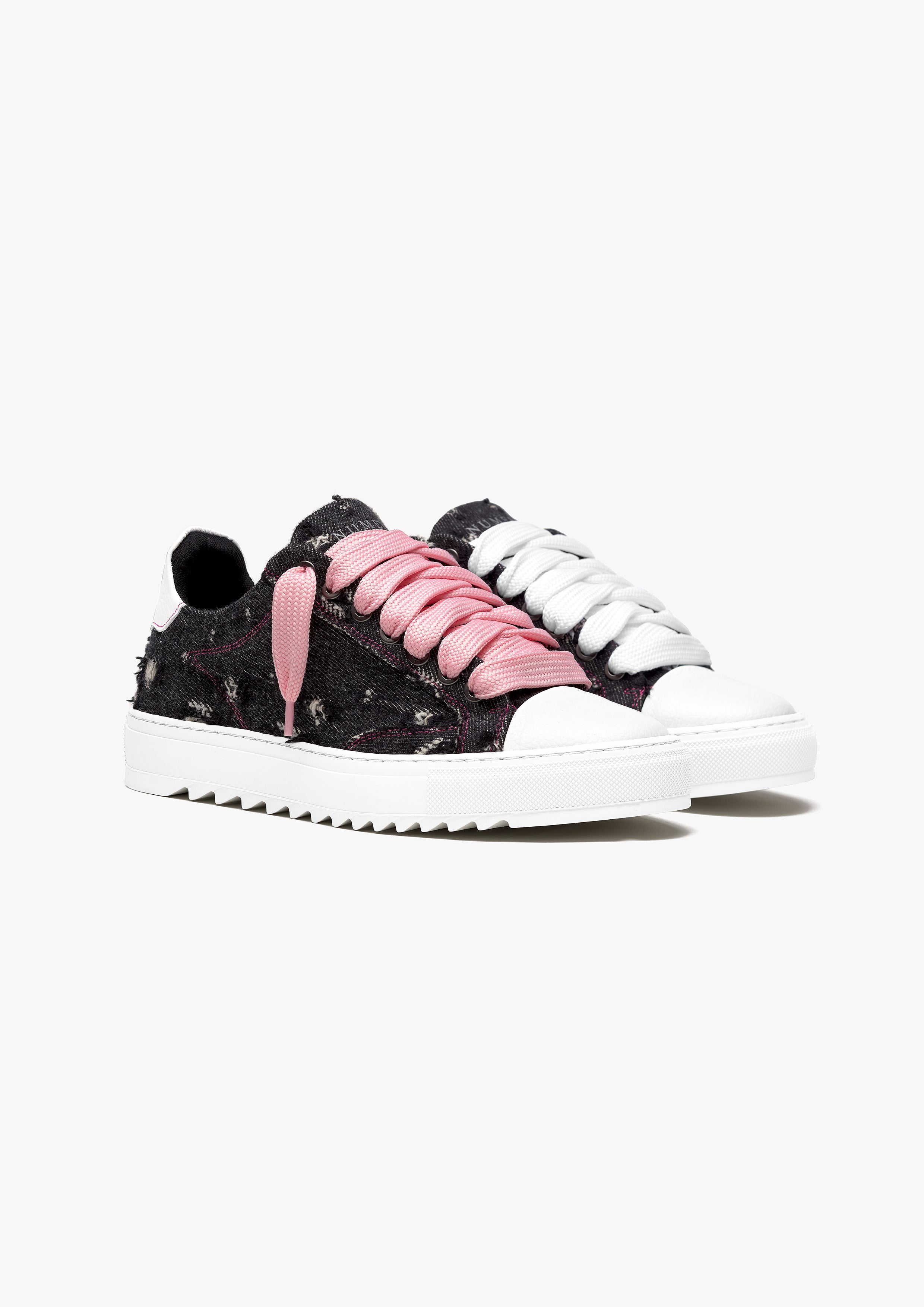 The Pink Denim trainer is a celebration of freedom and self-expression. Crafted with meticulous attention to detail, the bespoke hand-distressed denim upper ensures that each pair is a unique work of art, as no two pairs will bear the same distressed pattern. Complementing this distinctive feature is the signature crisp white pebbled leather toe cap, adding a touch of sophistication to the design. Inside, the trainer boasts a comfortable collar lining that enhances the overall wear experience. The finishing touches include our distinctive Numeriś branding on the heel, accompanied by the style-defining slogan, 'Design is thinking made visual.'