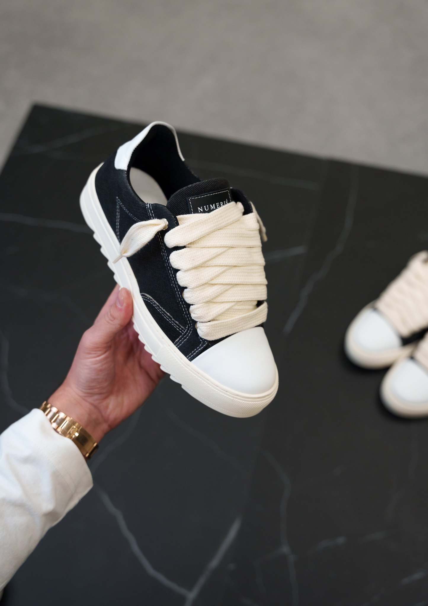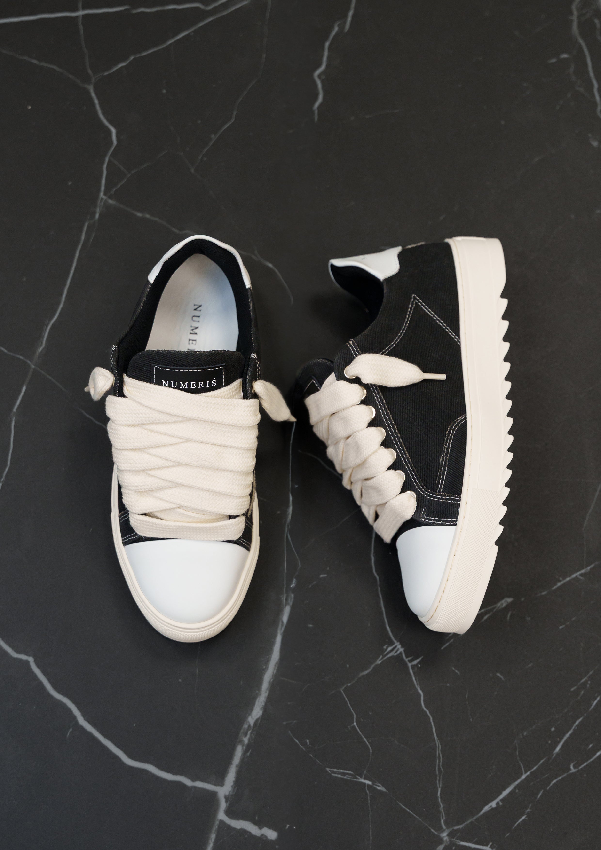 The Atelier trainer was inspired by Parisian lifestyle. Every stitch and detail was meticulously designed in a Parisian workshop. Twill features a premium black canvas upper with white stitching and finished with our signature smooth leather white toe cap. The interior of the trainer features collar lining providing unrivalled comfort. The final touches see our Numeriś branding on the heel of the shoe.
