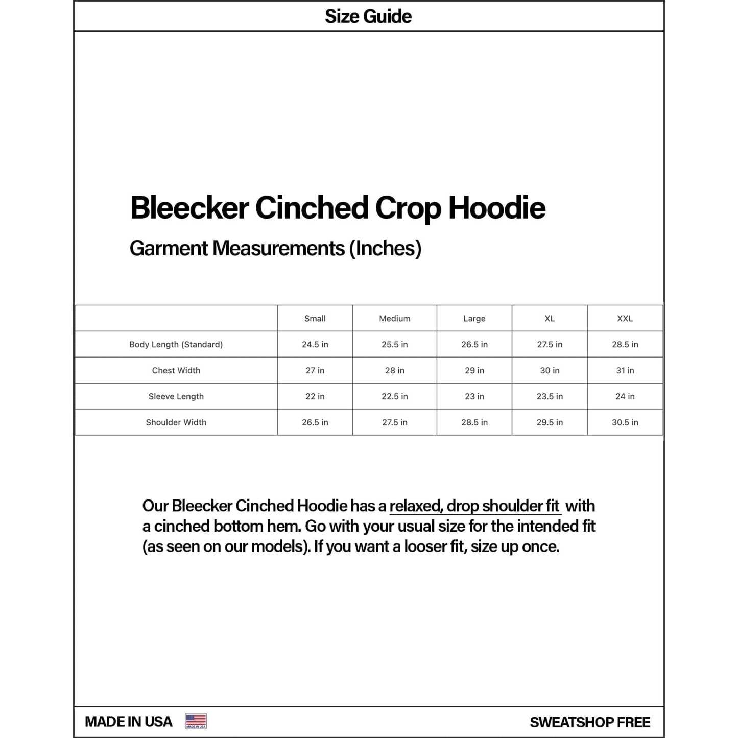 The Bleecker Cinched Crop Hoodie features a relaxed, drop-shoulder silhouette with a cropped length that falls just below the belt line. The adjustable cinched bottom hem lets you fine-tune the length — wear it slightly cropped for a sharper look, or lower it for a more relaxed look.