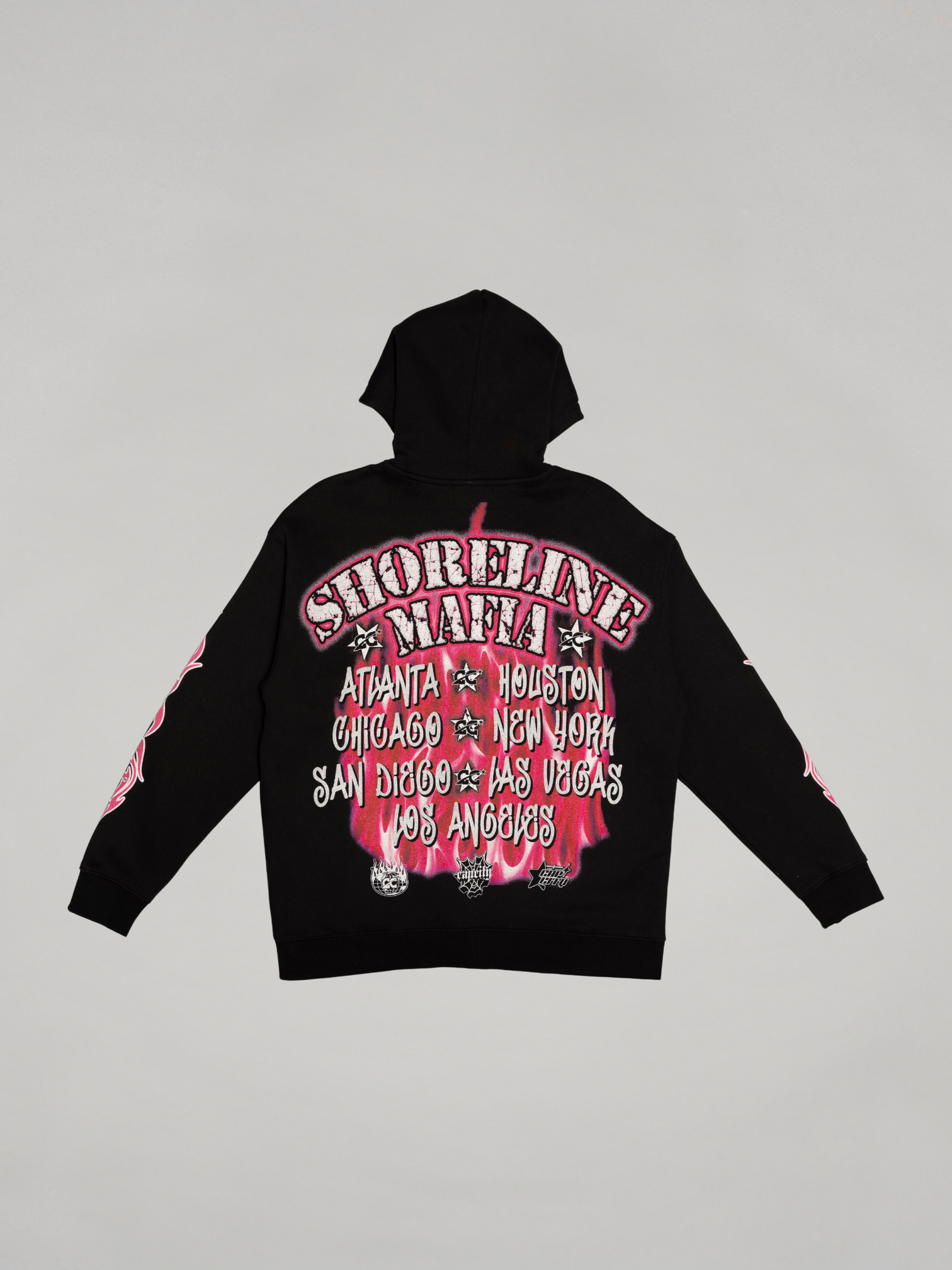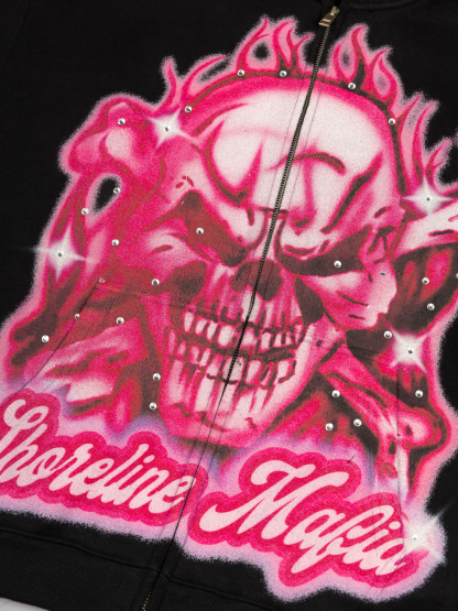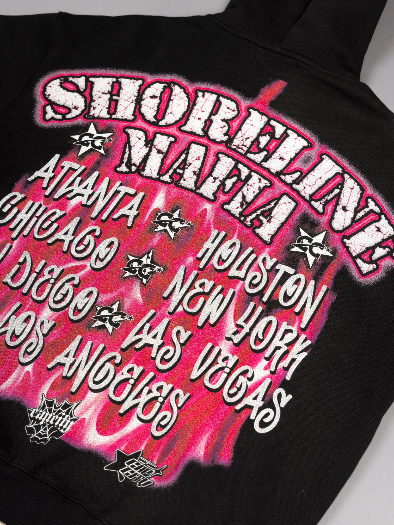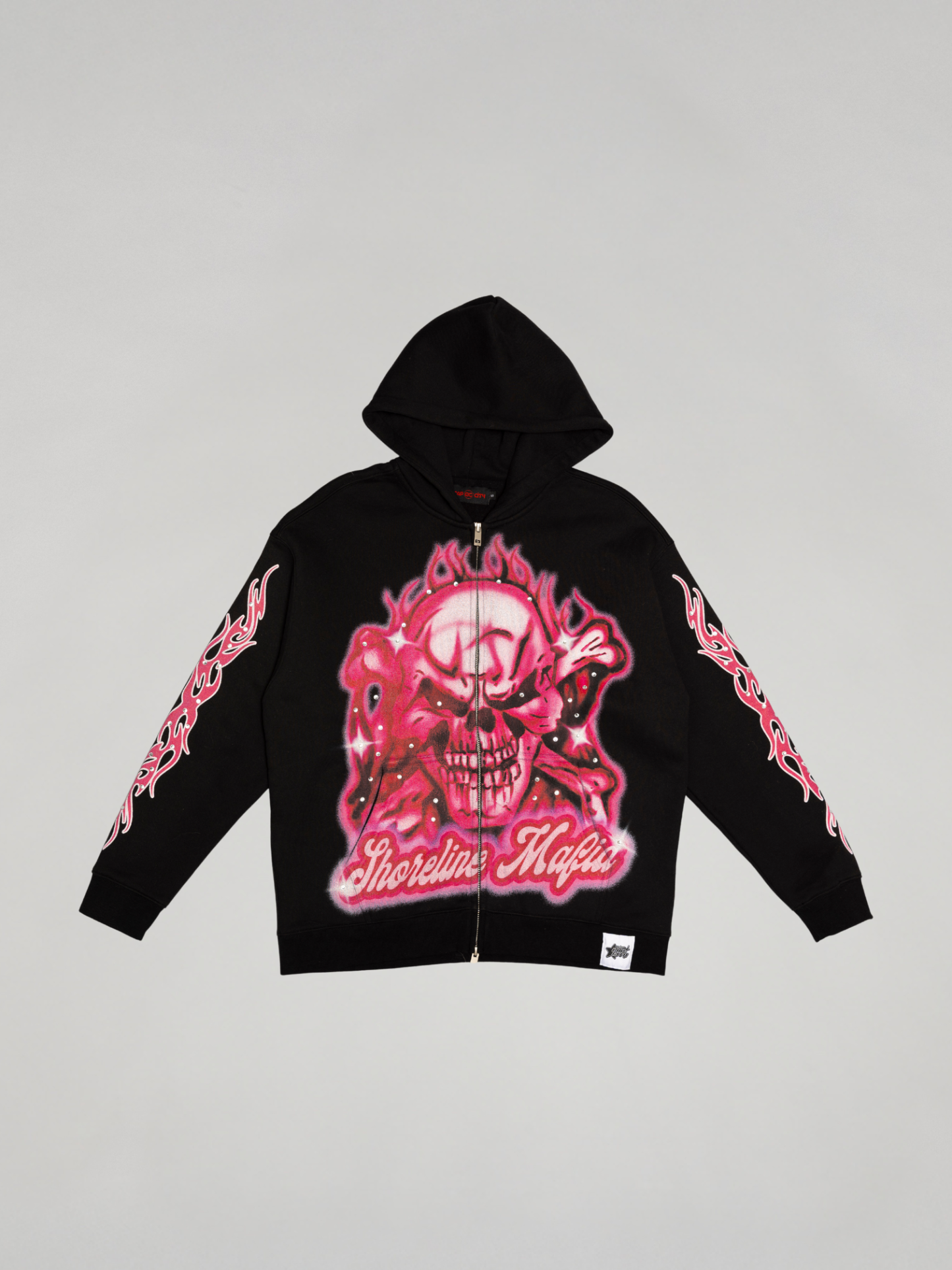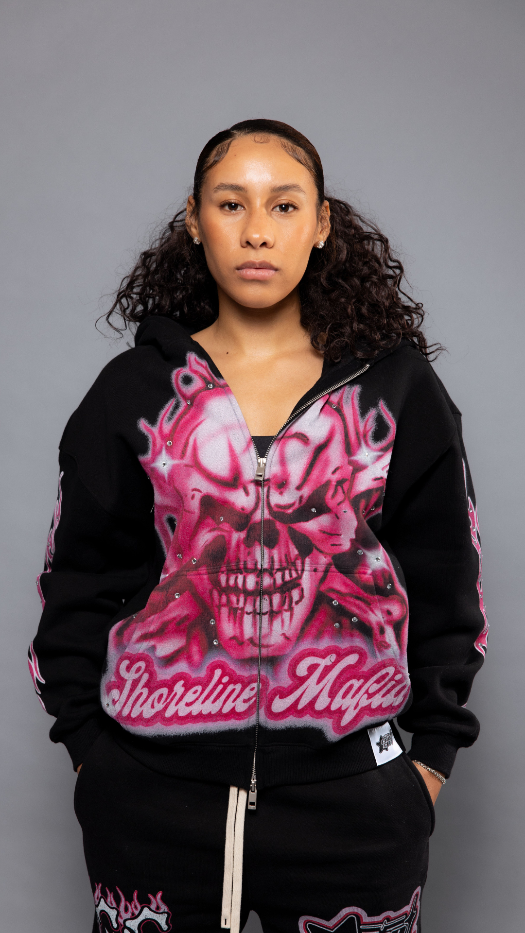 CAP CITY X SHORELINE MAFIA BLACK/PINK AIR BRUSH ZIP UP HOODIE W/ RHINESTONES - UNISEX