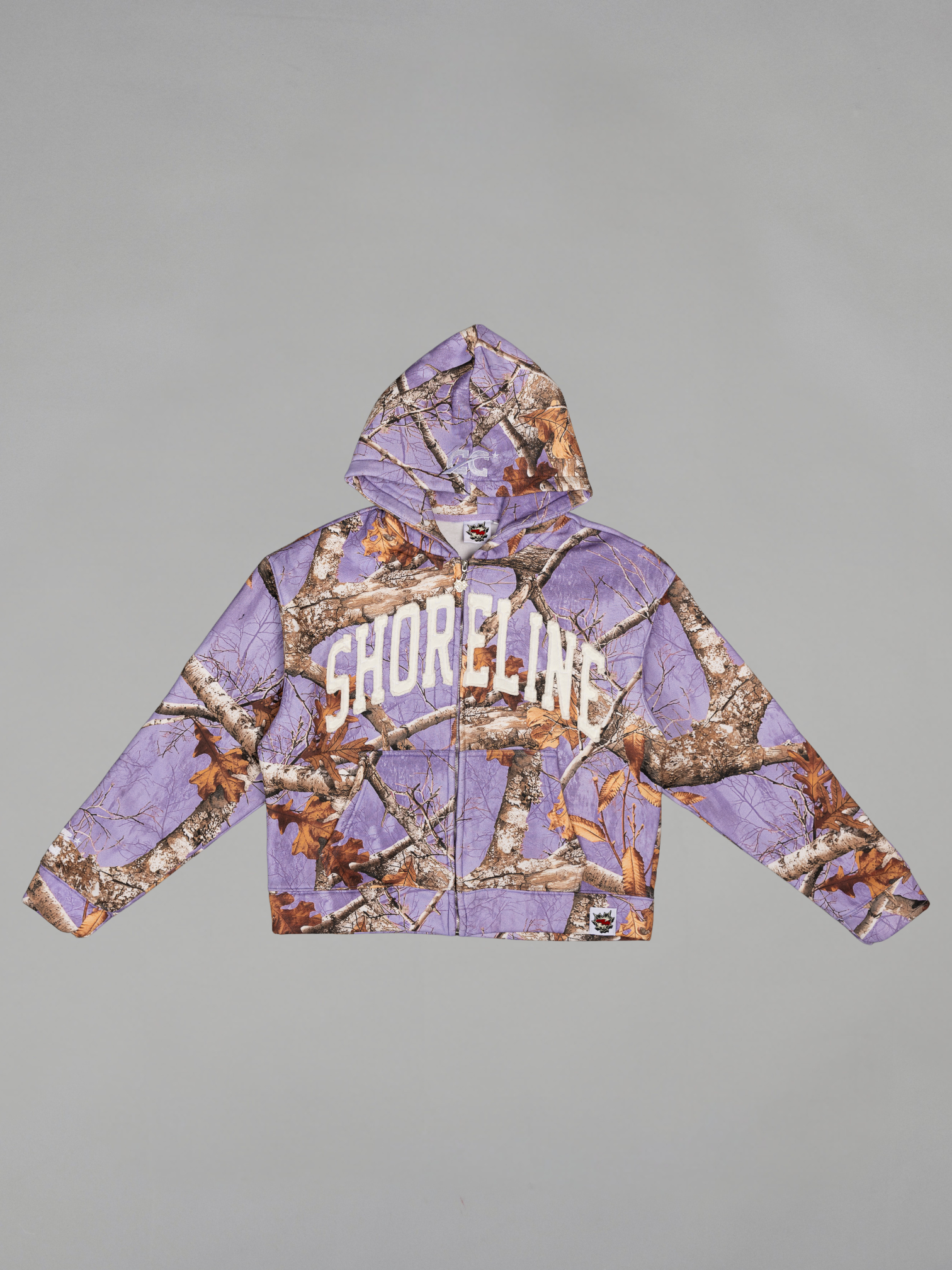 CAP CITY X SHORELINE MAFIA LAVENDER CAMO ZIP UP HOODIE -UNISEX