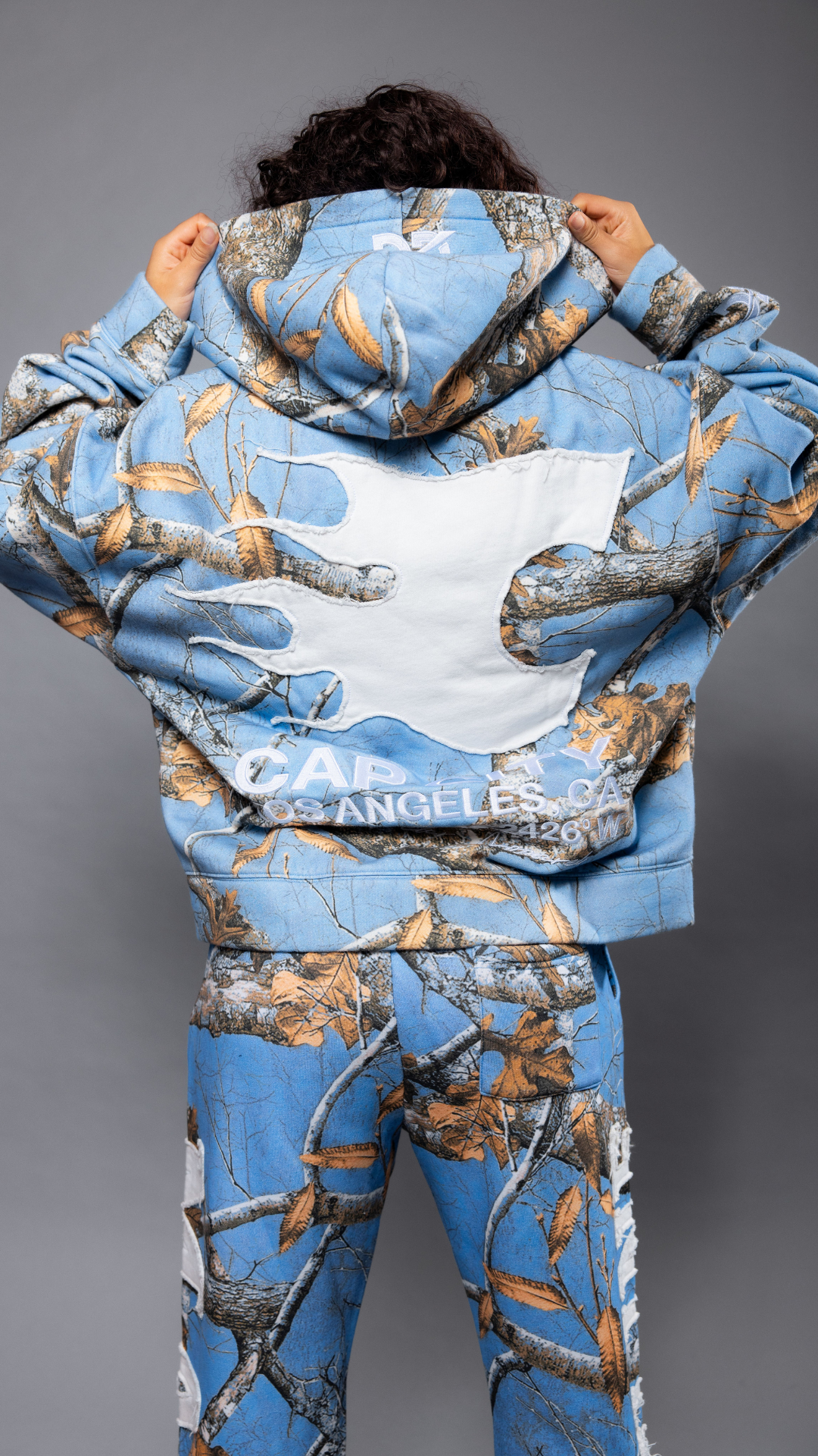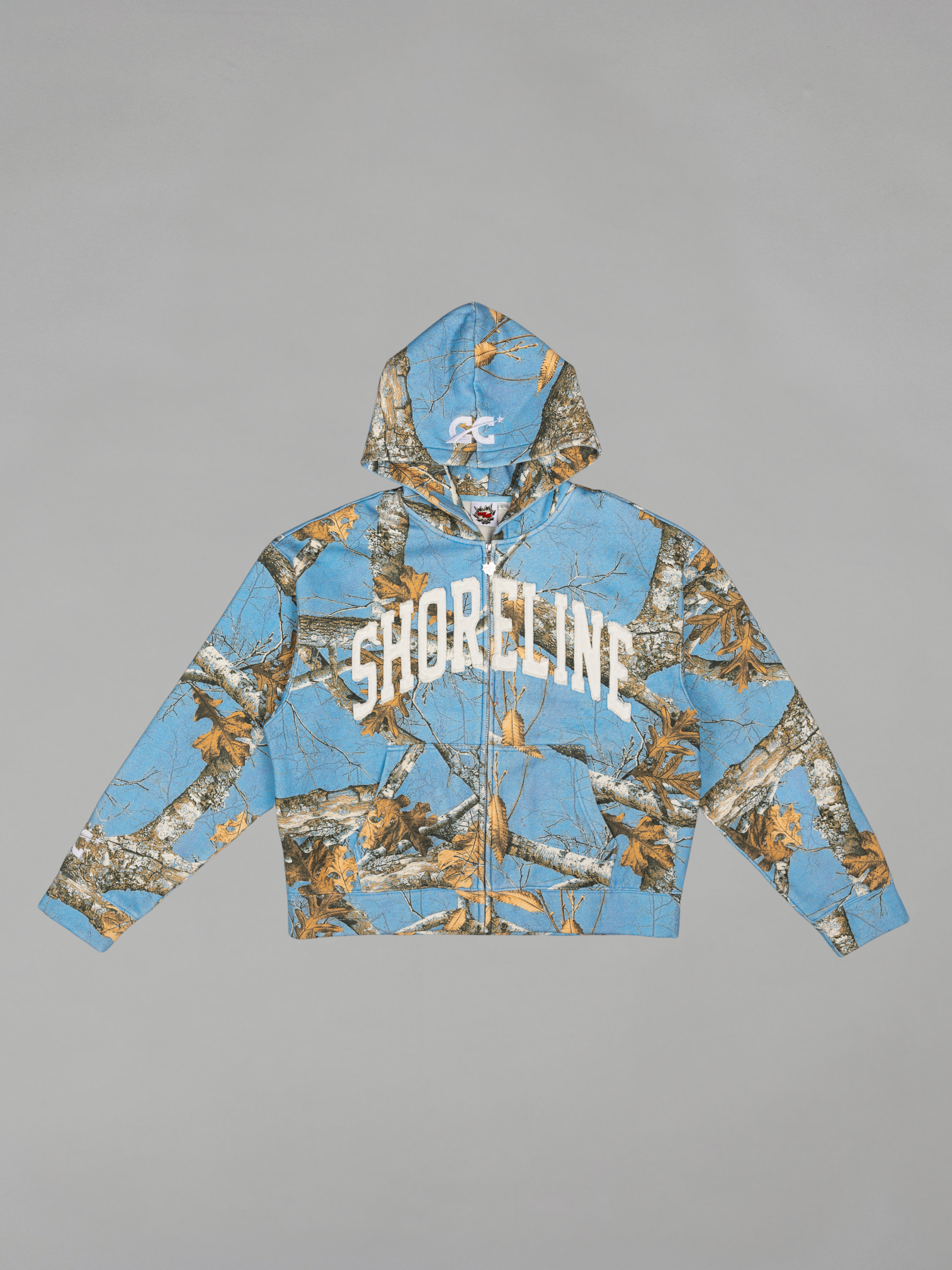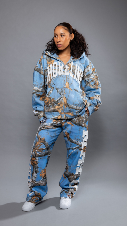 CAP CITY X SHORELINE MAFIA SKY BLUE ZIP UP CAMO HOODIE -UNISEX