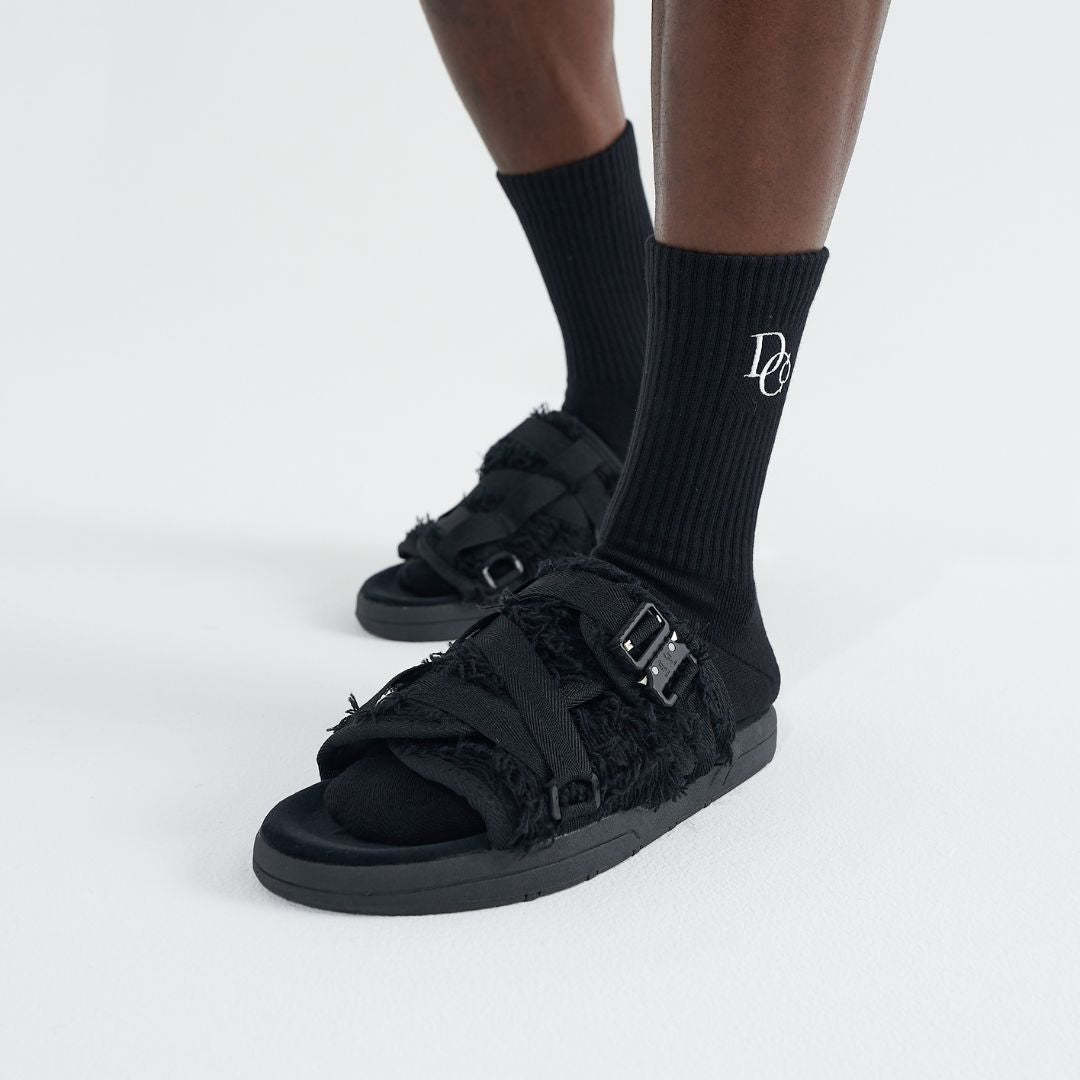 Introducing a fresh metal clasp for a snug fit, complemented by a Velcro strap atop the slide to prevent any hanging straps.