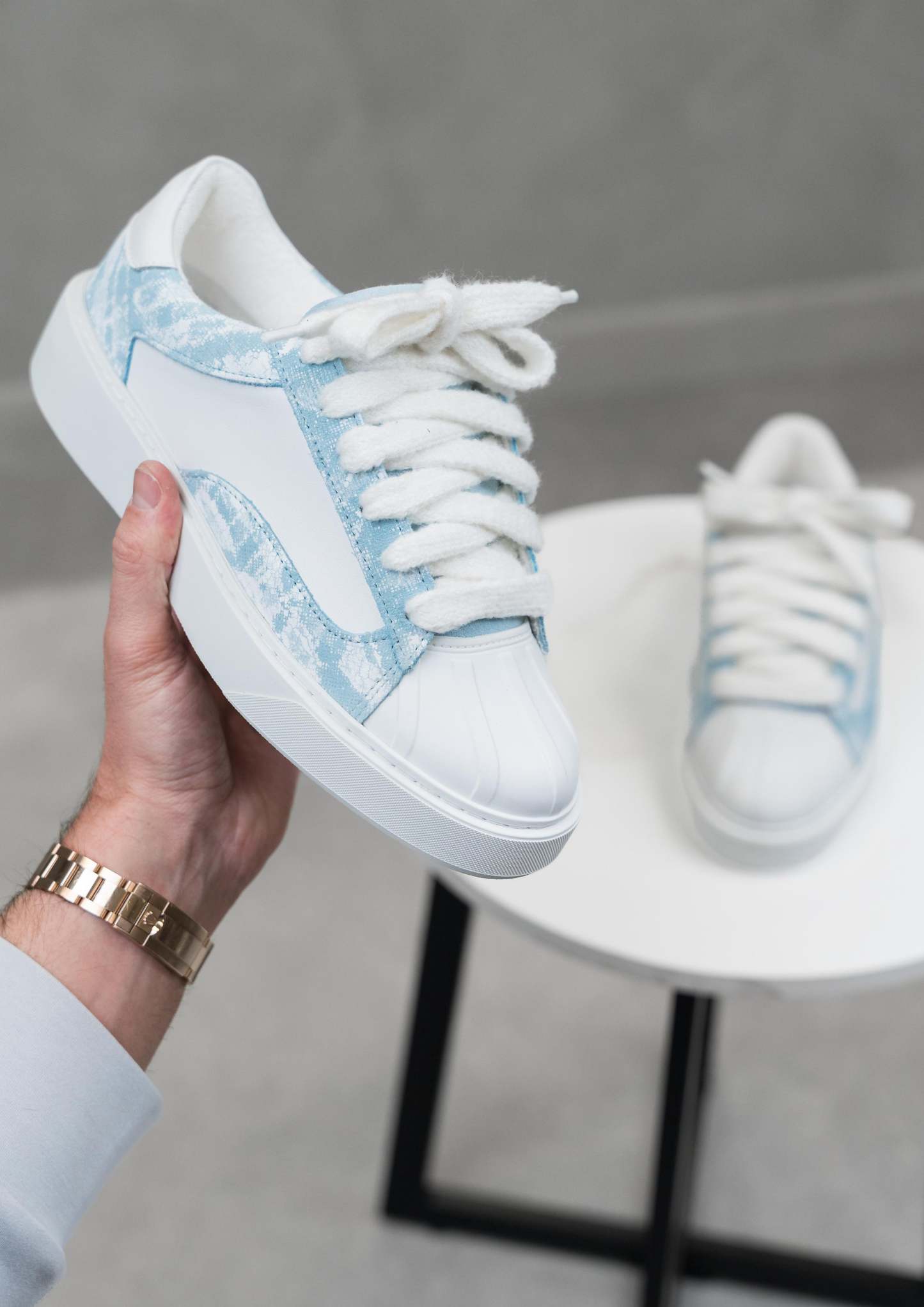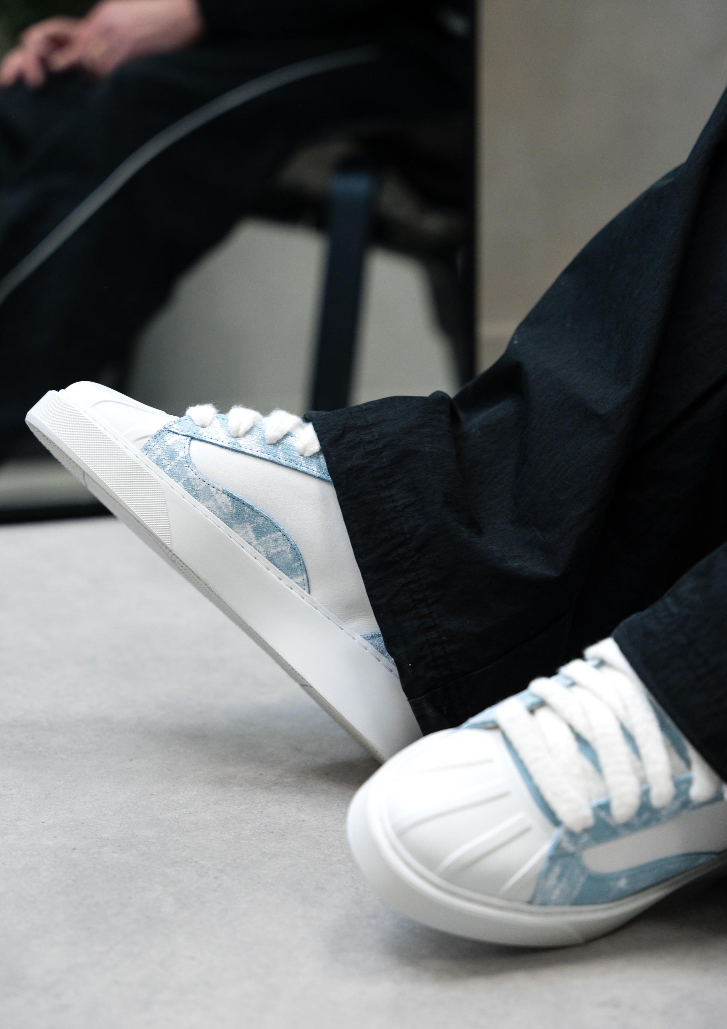 The Brush Blue colourway features Italian Blue suede and White leather upper. With 10mm wide white mohair laces, each pair is soft to the touch and slightly textured. Bespoke white paint pattern is tiled on the side. Numeris branding is positioned along the tongue, creating a clean aesthetic. All of this rests upon our custom-engineered sole, developed exclusively for the Eclipse - to support the rubber shell toe. Fit is true to size but if you are in between sizes please choose the nearest size down.