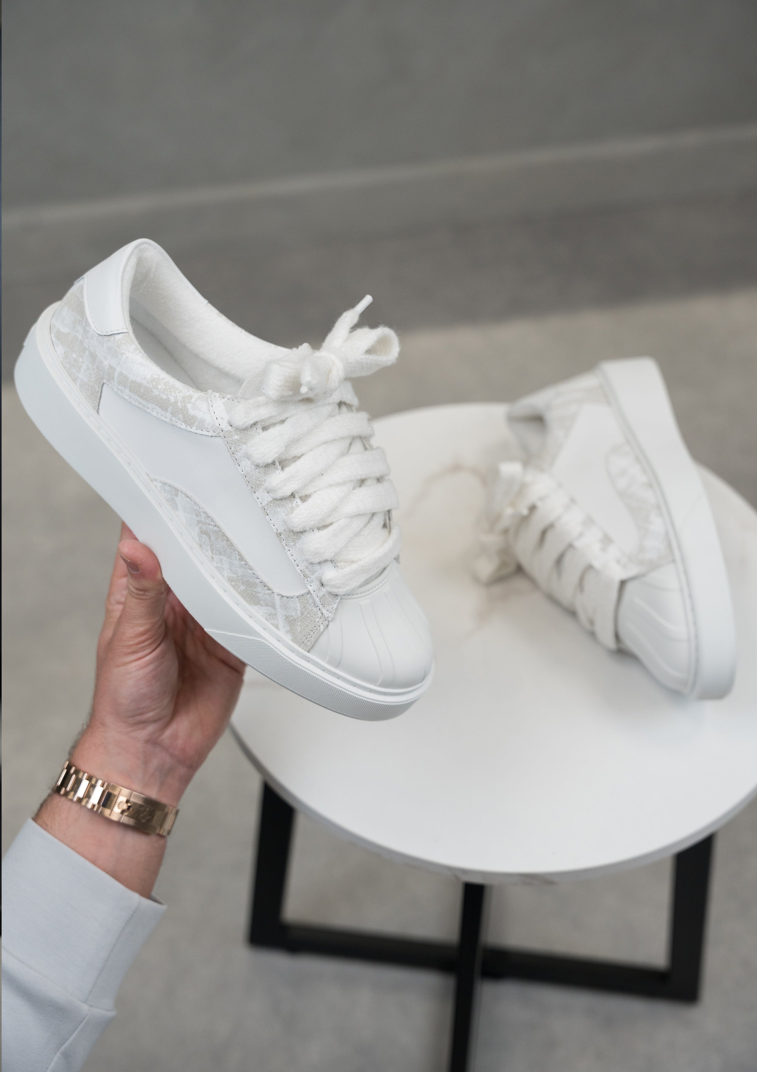 The Brush Grey colourway features Italian Black suede and White leather upper. With 10mm wide white mohair laces, each pair is soft to the touch and slightly textured. Bespoke white paint pattern is tiled on the side. Numeris branding is positioned along the tongue, creating a clean aesthetic. All of this rests upon our custom-engineered sole, developed exclusively for the Eclipse - to support the rubber shell toe. Fit is true to size but if you are in between sizes please choose the nearest size down.
