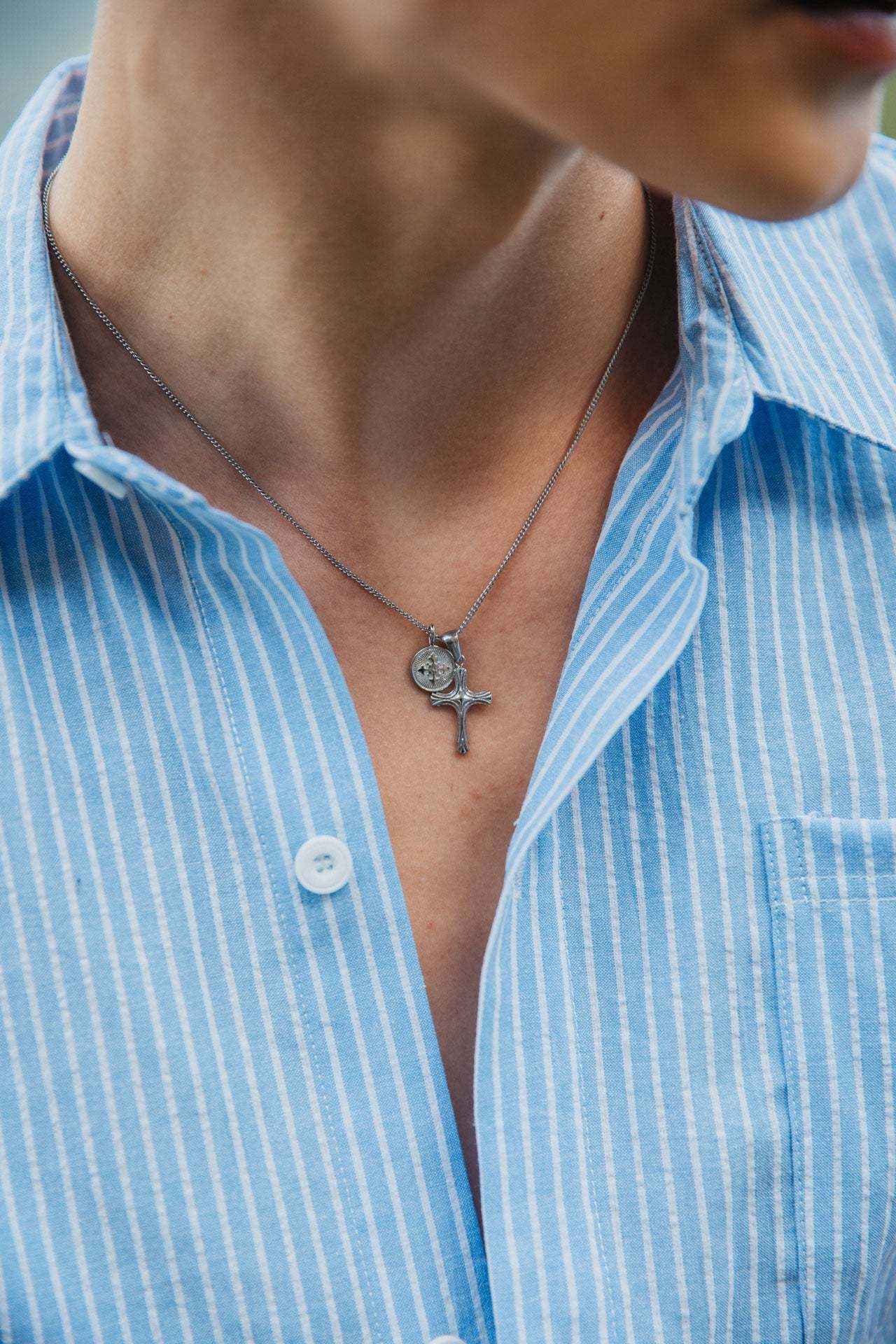 • Stainless steel• Adjustable chain• Chain length: 450-520mm• Chain width: 1.5mm• Curb chain• Double-charm pendant