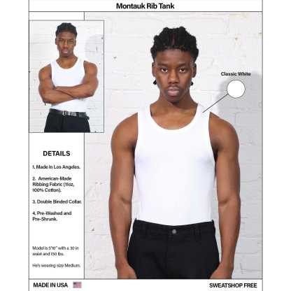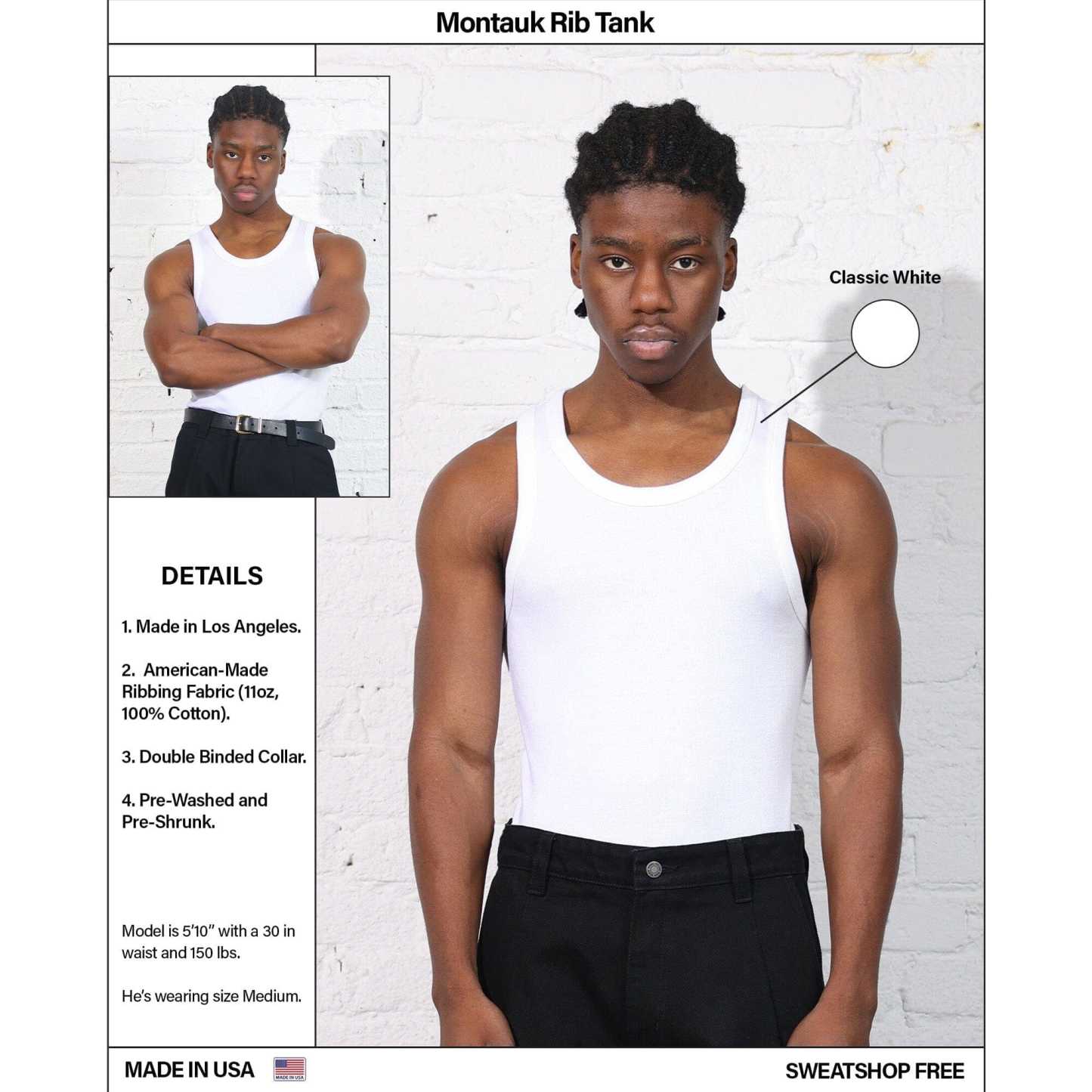 The Montauk Rib Tank isn’t your average tank top. Knit in Los Angeles by the same textile partner behind our signature tees, it’s made from a premium ribbed american-grown cotton with a structured hand-feel and natural breathability. The weight is perfectly balanced — light enough for the day, substantial enough to layer under a button-up at night.