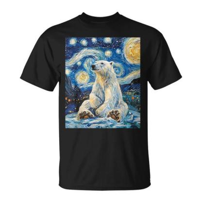 Cute Polar Bear Van Gogh Style Starry Night T-Shirt