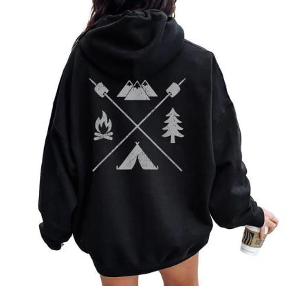 Vintage Camping Hiking Camper Men Women Kids Women Oversized Hoodie Back Print