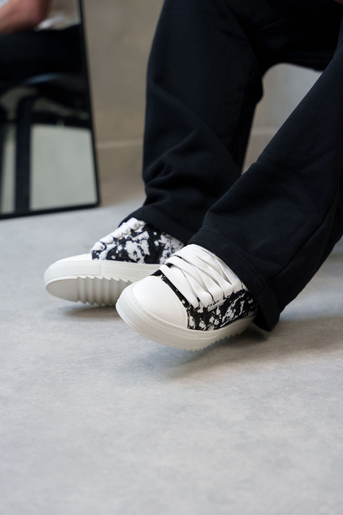 Crafted with meticulous attention to detail, the bespoke hand-dyed canvas upper ensures that each pair is a unique work of art, as no two pairs will bear the same pattern. Complementing this distinctive feature is the signature crisp white pebbled leather toe cap, adding a touch of sophistication to the design. Inside, the trainer boasts a comfortable collar lining that enhances the overall wear experience. The finishing touches include our distinctive Numeriś branding on the heel, accompanied by the style-defining slogan, 'Design is thinking made visual.'