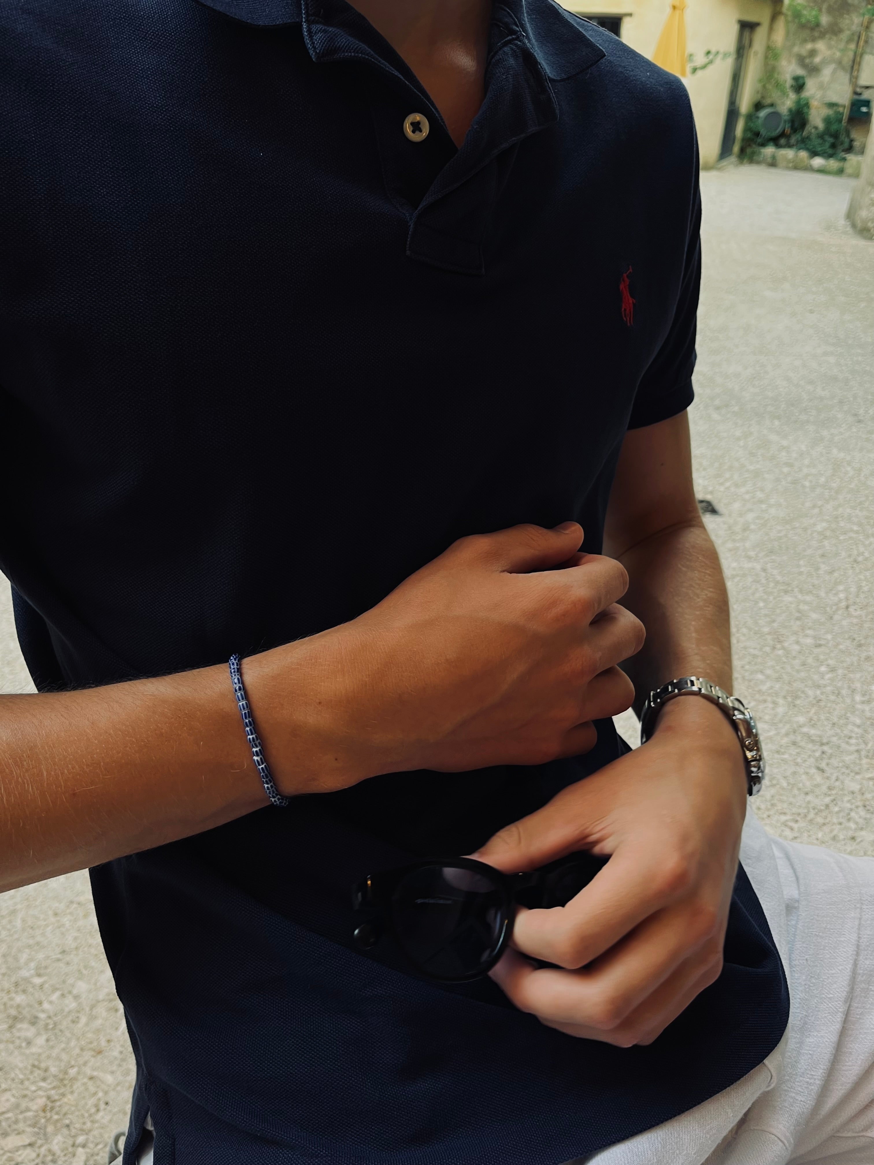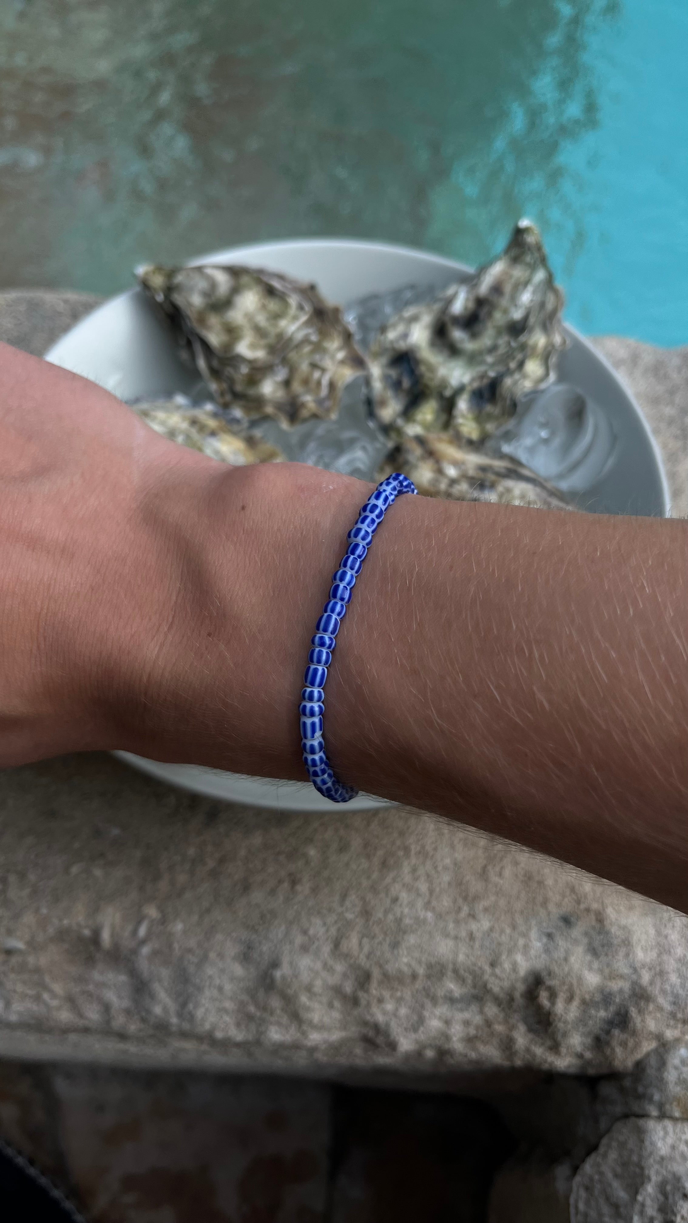 -Add a touch of effortless luxury to your look with our handcrafted Ocean bracelets. Made with high-quality glas and finished with a signature blue stripes, these bracelets combine elegance, durability, and practicality. Designed to be water-resistant, they’re perfect for daily wear without compromising on style.