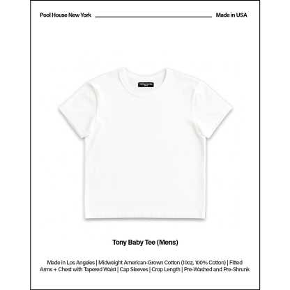 Inspired by the vintage baby tees worn by Anthony Kiedis’ father in 1970s LA, the Tony Tee features a shorter length than our Standard Los Feliz Tee, capped sleeves, and a tailored fit throughout. It’s designed to hit just below the belt for that perfect tucked-but-not look.